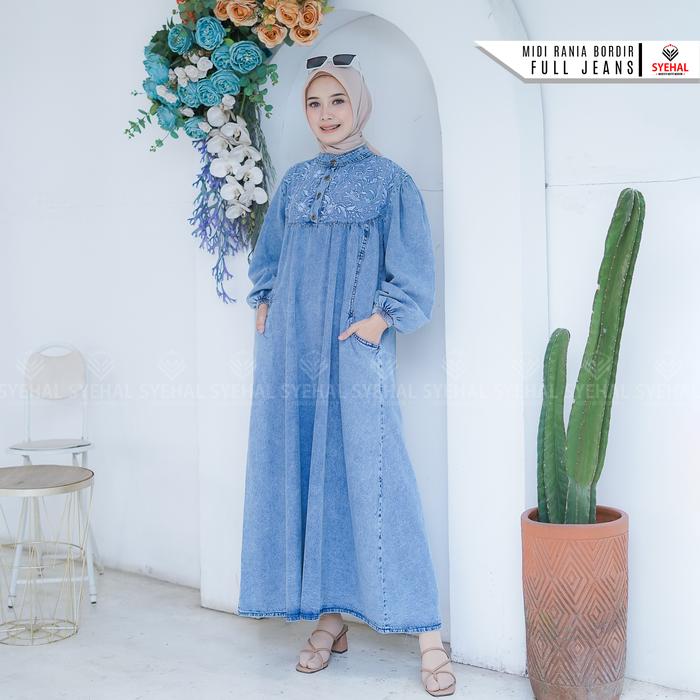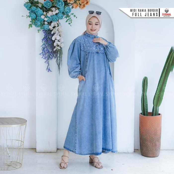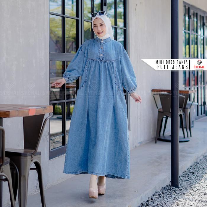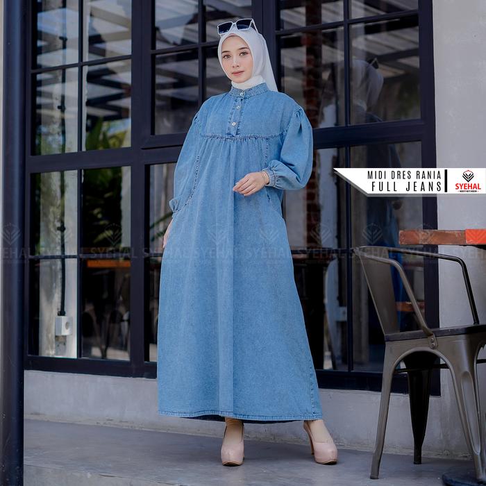 Syehal Collection Midi Rania - Midi Jeans Wanita - Gamis Midi Jeans Pakaian Wanita Muslim - Baju