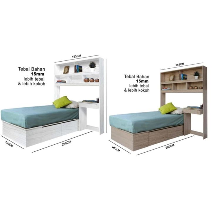 Ranjang Kayu Divan Set Dan Meja Kerja Dan Meja Belajar Dan Rak Buku Pajangan Set