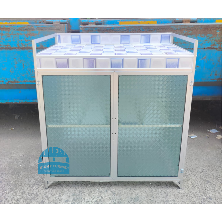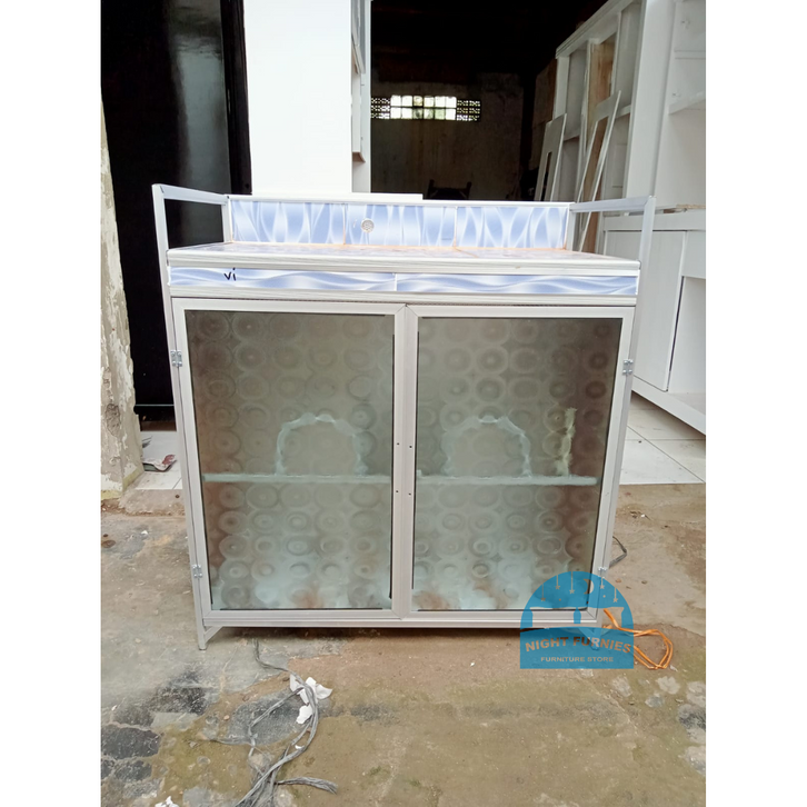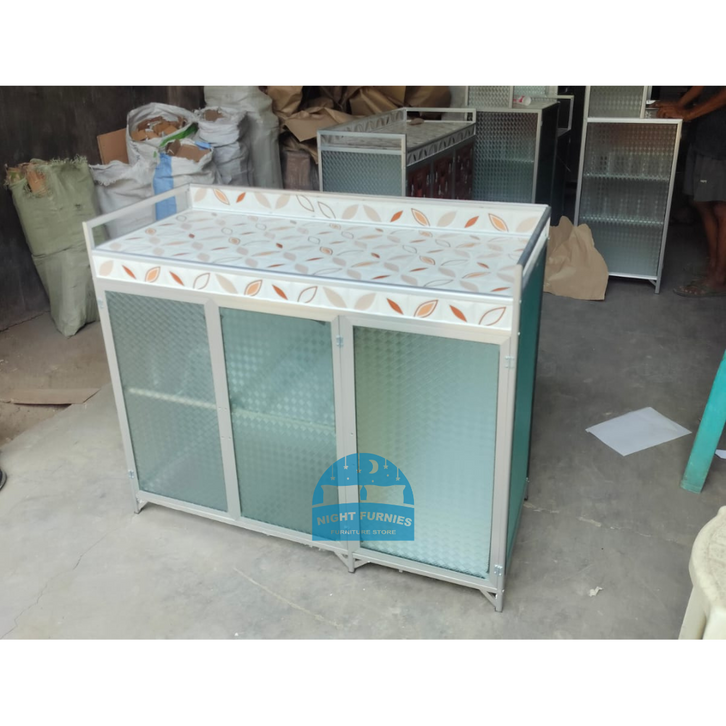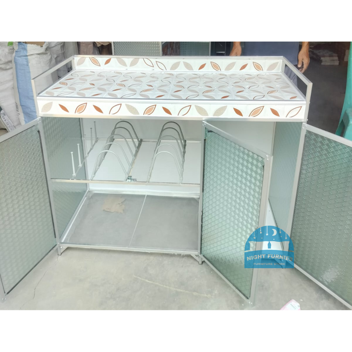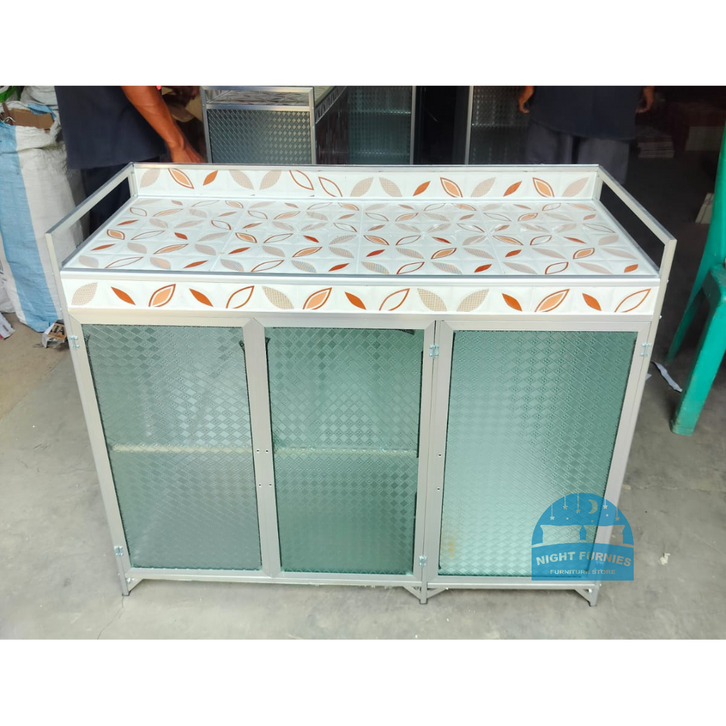 RAK KOMPOR RATA BAHAN ALUMUNIUM MINIMALIS MURAH / RAK KOMPOR RATA 3 PINTU BAWAH KERAMIK