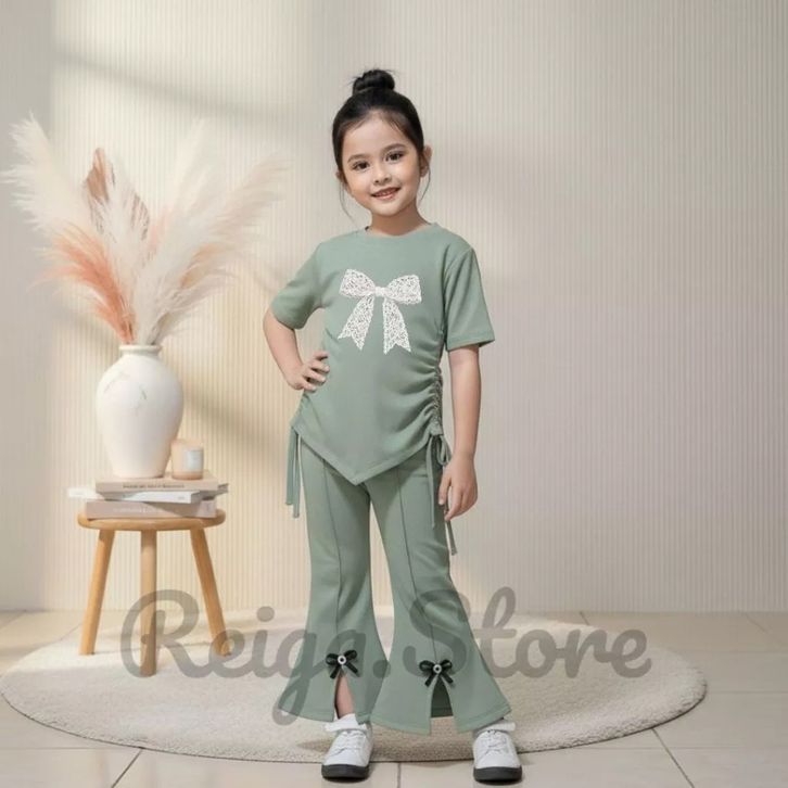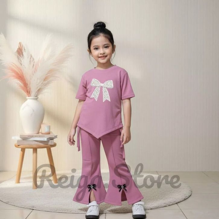 BAJU SETELAN ANAK PEREMPUAN USIA 1-7 TAHUN SETELAN ANAK CEWEK LENGAN PENDEK MOTIF PITA ONE SET ANAK PEREMPUAN