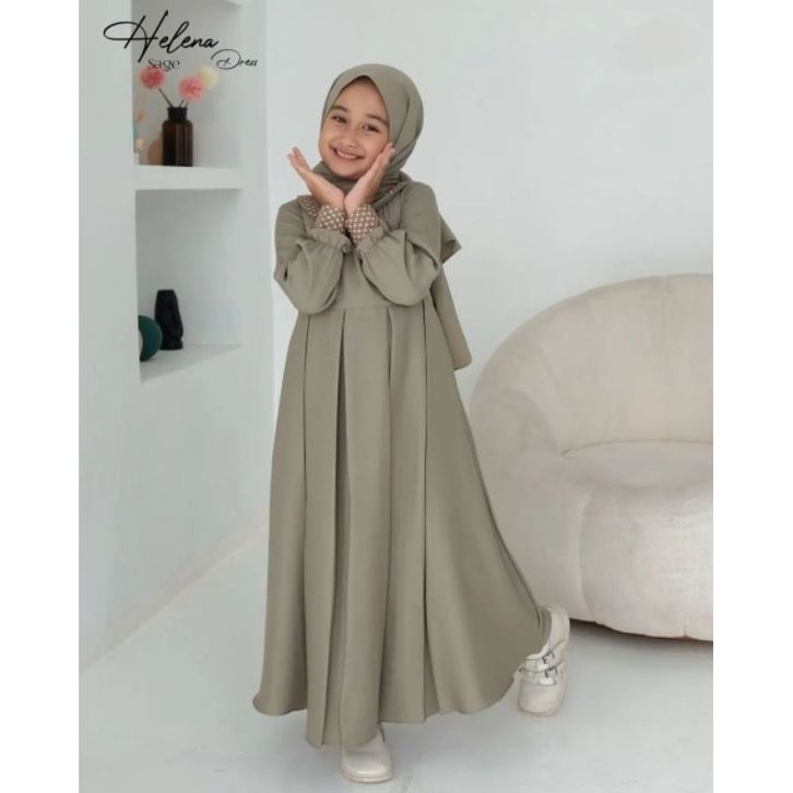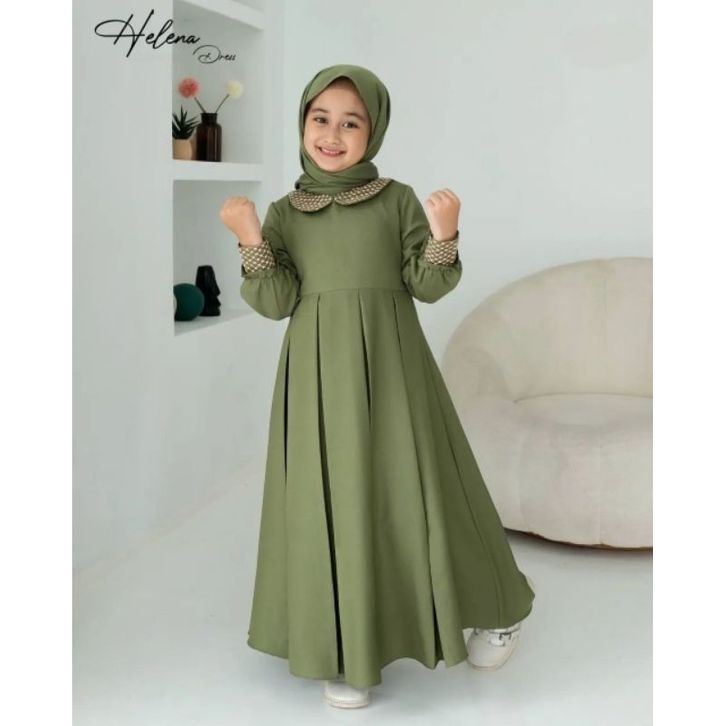 Helena dress kids gamis anak terbaru usia 5-12 tahun S.M.L.XL/ dress anak cringkle / gamis polos anak terlaris