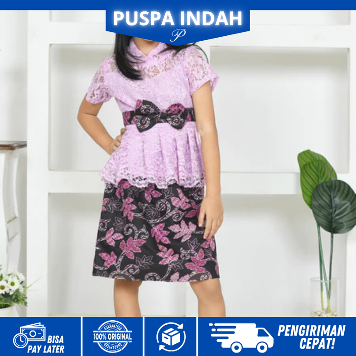 Setelan Kebaya Anak Brukat Batik Modern RURU KID / Kebaya Kutu Baru Anak Pesta Kondangan