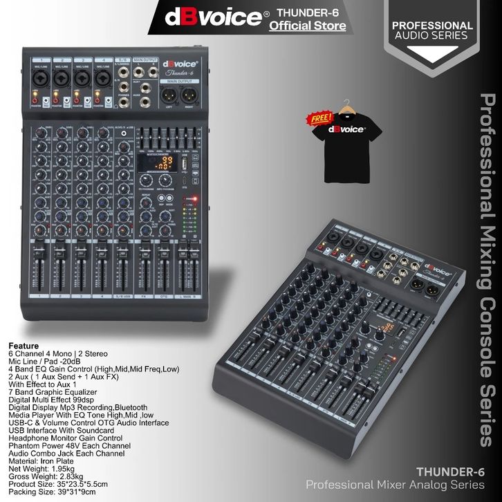 Mixer 6Ch Dengan Dual Audio Interface USB-A dan USB-C dBvoice THUNDER-6
