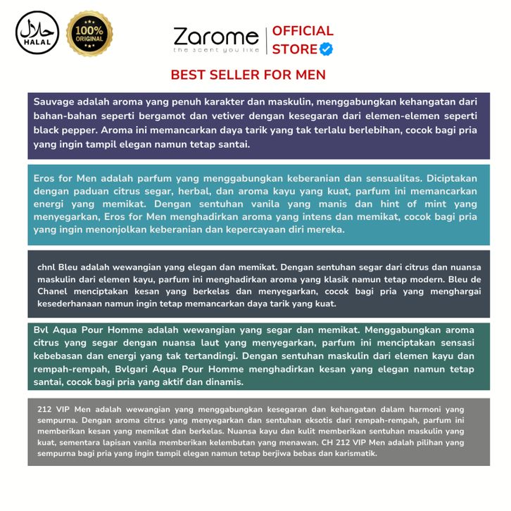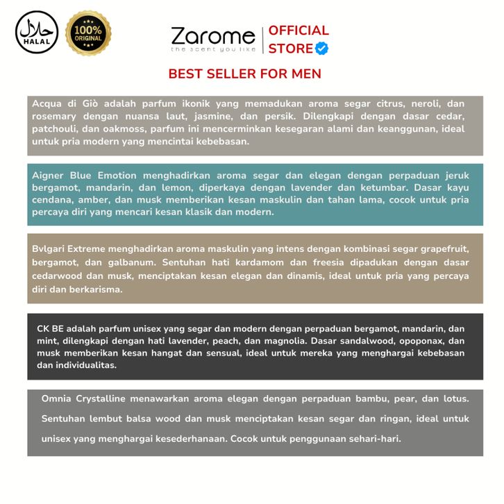 Buy 1 Get 1 Zarome Parfum Pria Wanita Wangi Tahan Lama All Variant