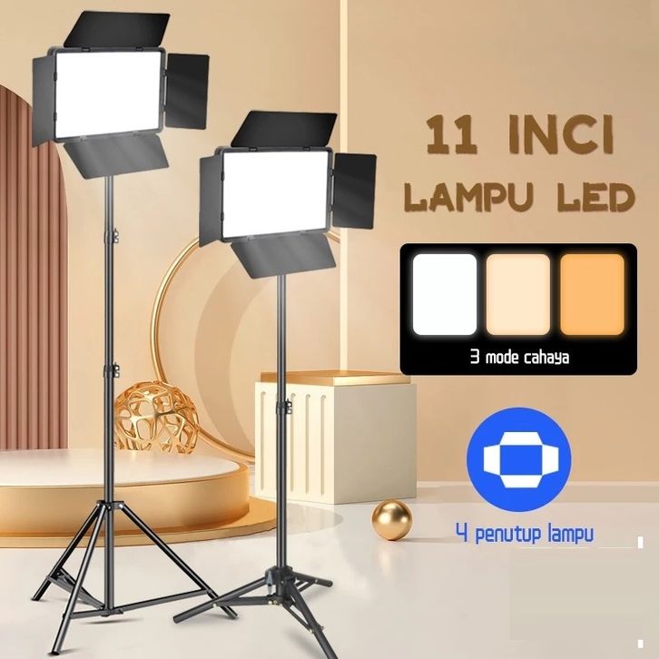 Lampu Foto 11" LED Video Light + Tripiod Lampu Fotografi Live Streaming Vlogging