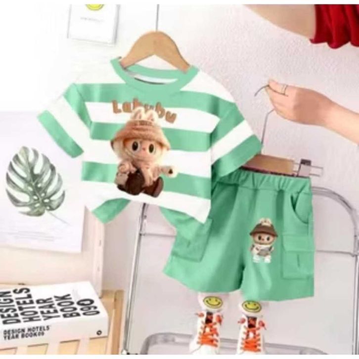 Setelan Anak Korean Style Cewek Cowok Setelan Anak Labubu Pendek Garis Garis Stelan Baju Anak Import Usia 1-7 Tahun