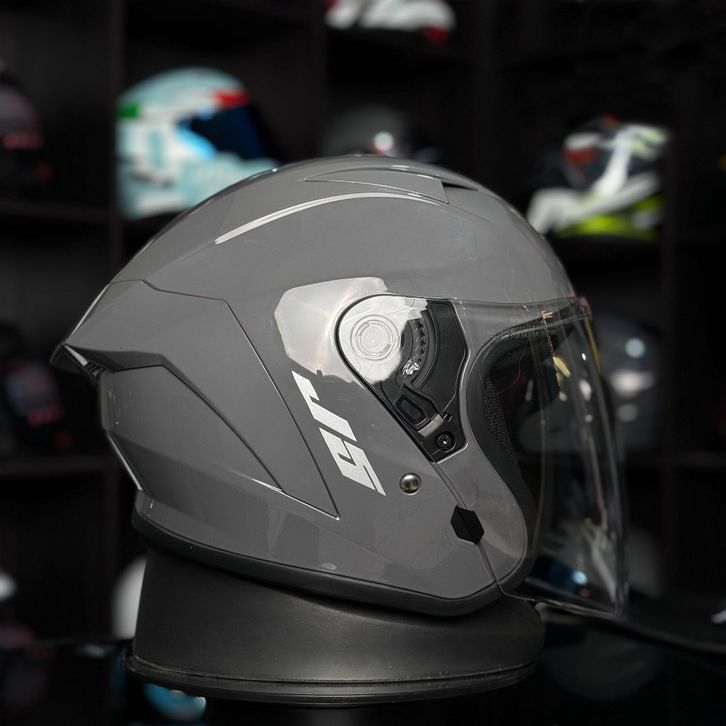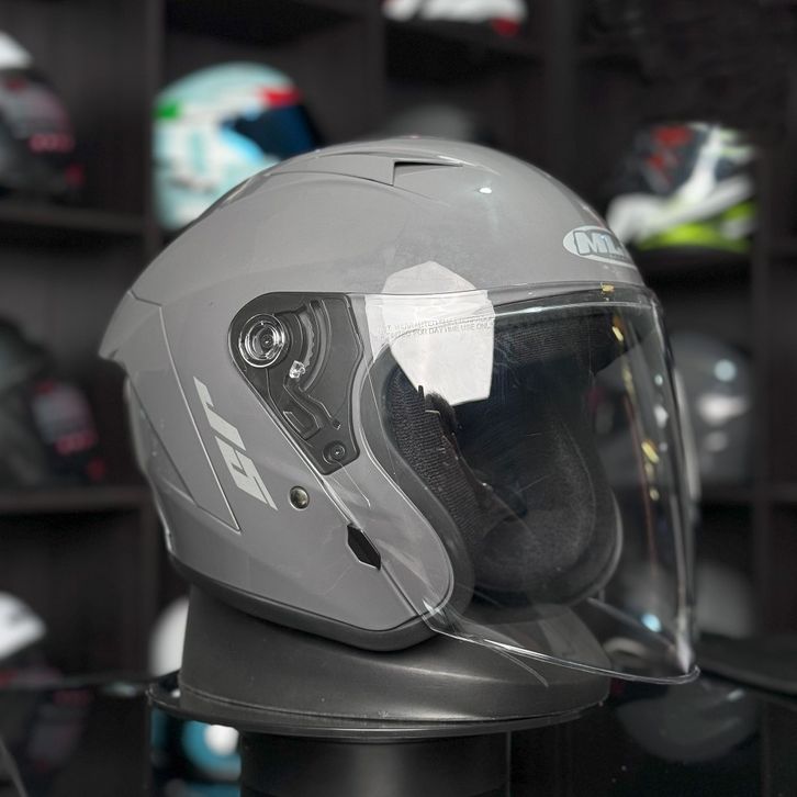 Helm Half Face miliA J5 Solid Terbaru9rey Glosy Visor Bening SNI Helm Dewasa Pria Dan Wanita Bisa
