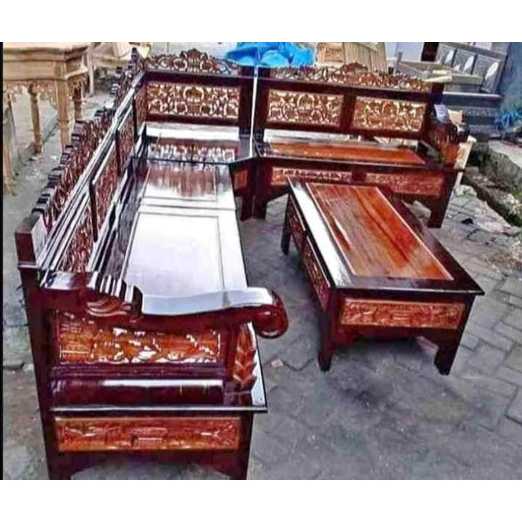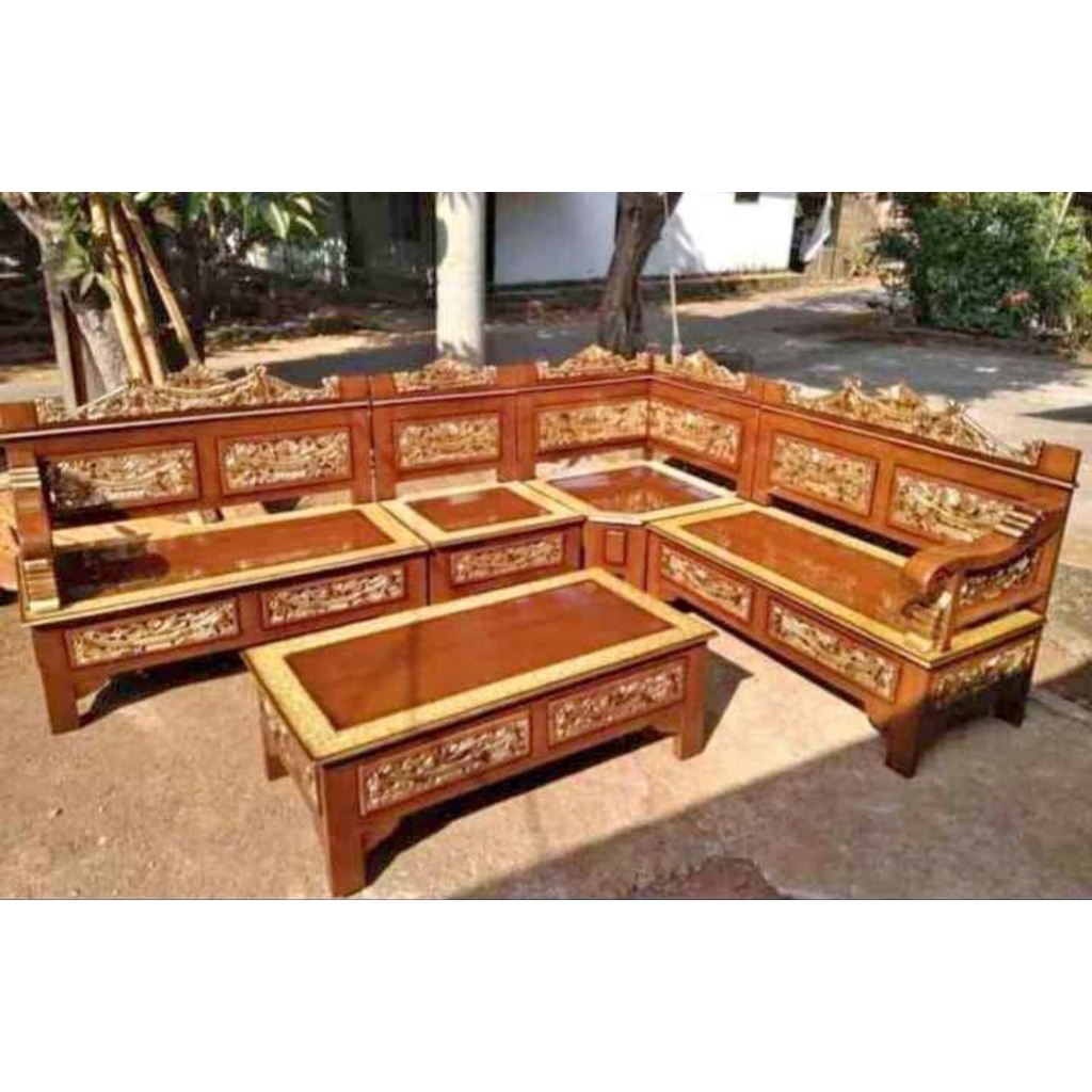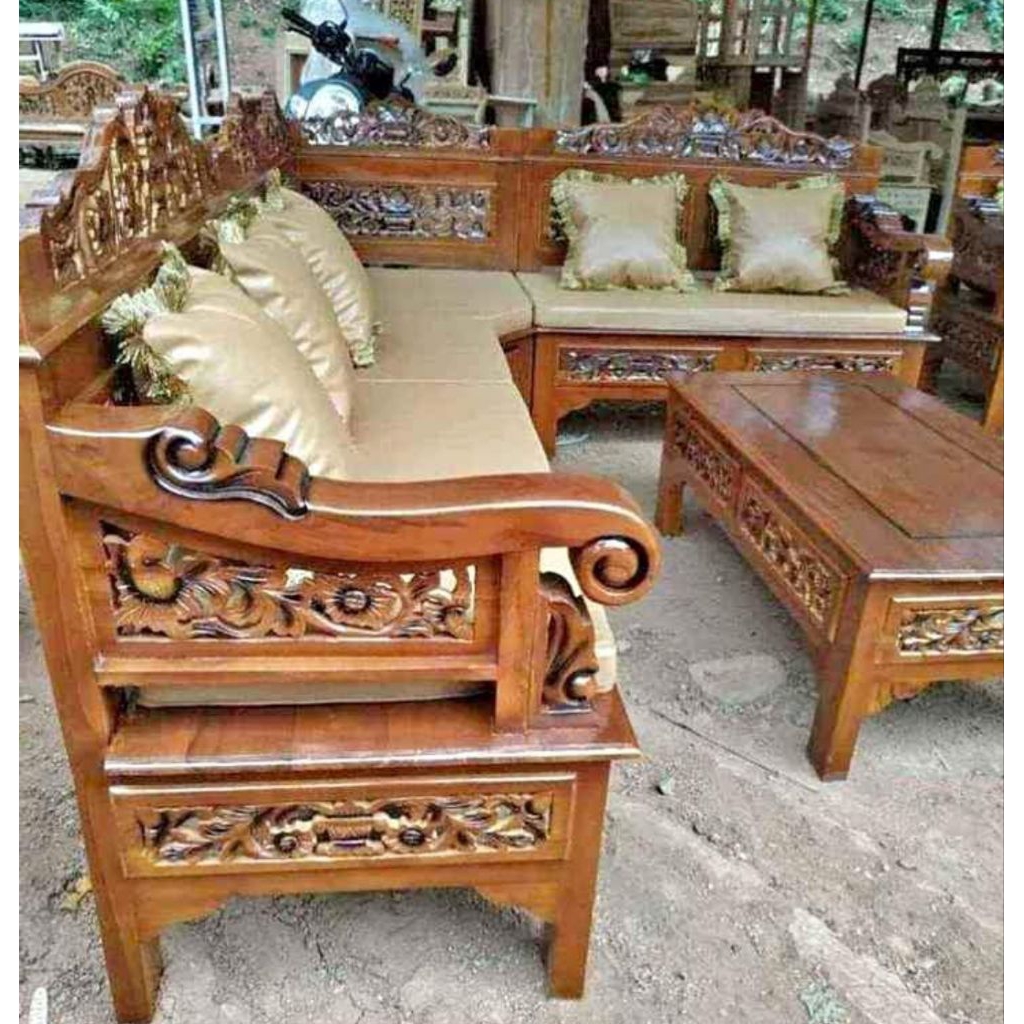 kursi ruang tamu Kursi Sudut Kayu Jati Ukir Tangan Bagong Desain Minimalis untuk Ruang Tamu terlaris