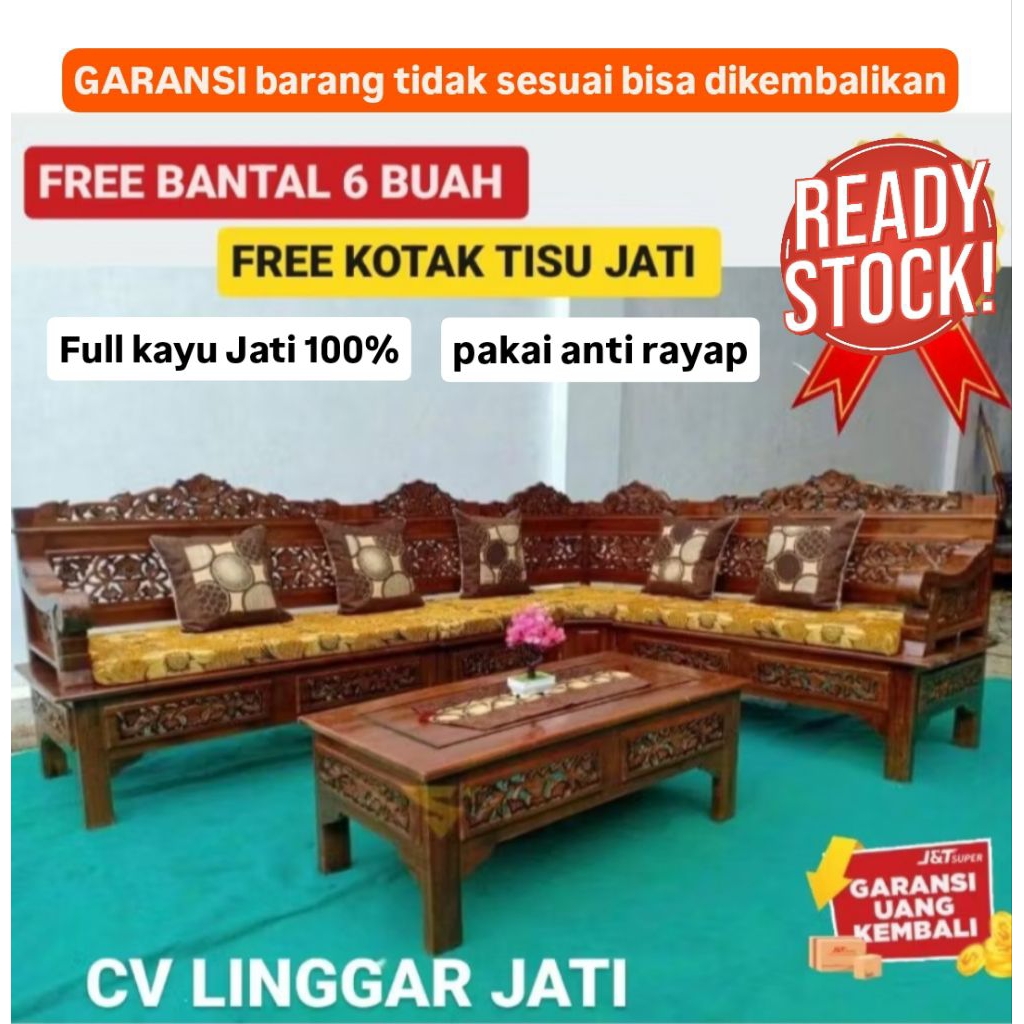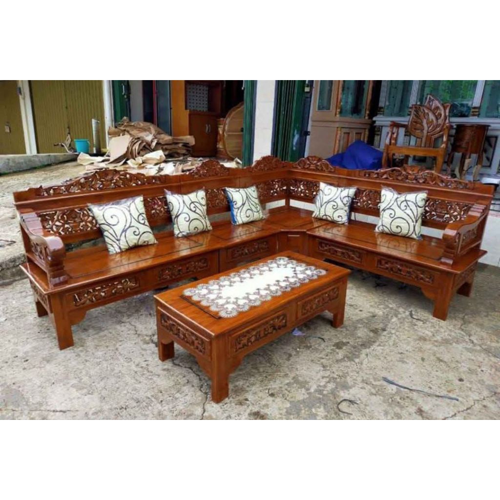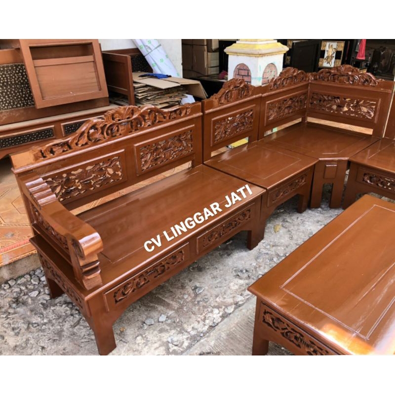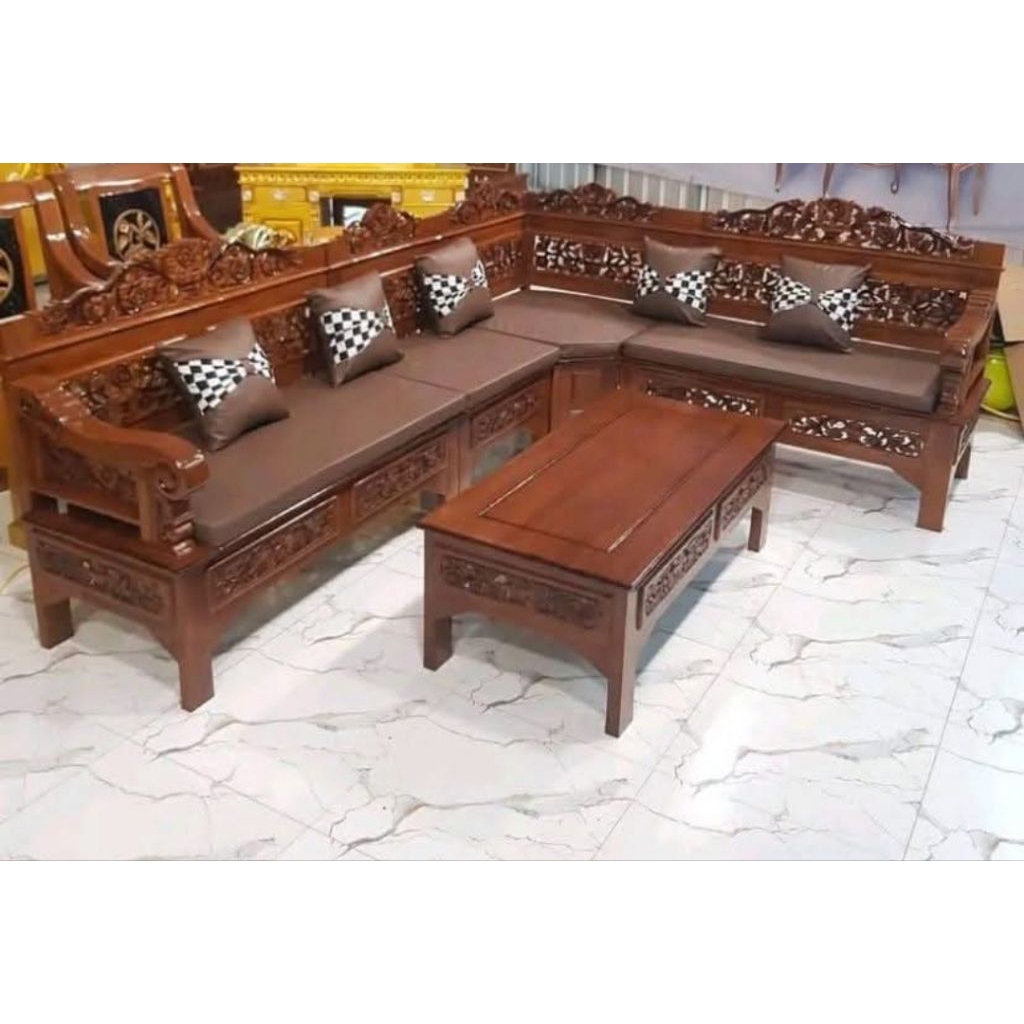 kursi ruang tamu Kursi Sudut Kayu Jati Ukir Tangan Bagong Desain Minimalis untuk Ruang Tamu terlaris