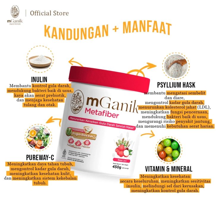 mGanik - Metafiber Leci 450gr - Suplemen Serat Diabetes Alami