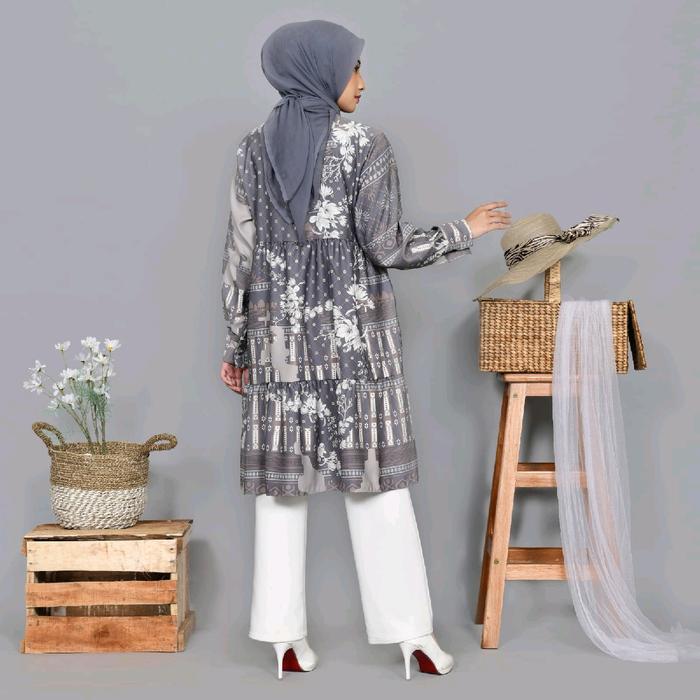 Tunik Kekinian Maxmara Lux Atasan Oversize Muslim Wanita Salur Katun Panjang Midi Dress Remaja