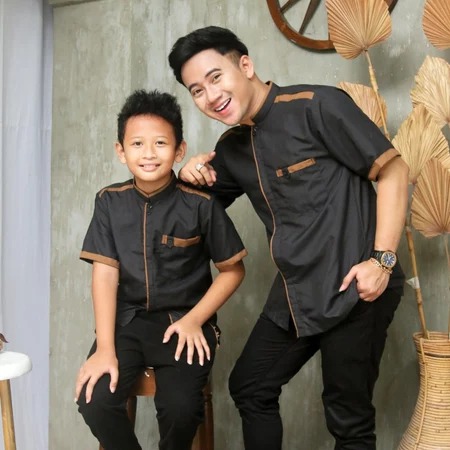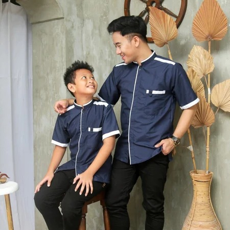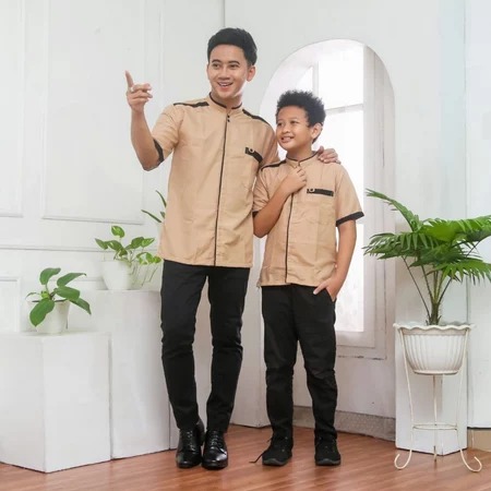 Baju Koko Couple Ayah Dan Anak Laki Laki Harga Terpisah Kurta Kerah Mandarin Seragam Hadroh Santri TERLARIS