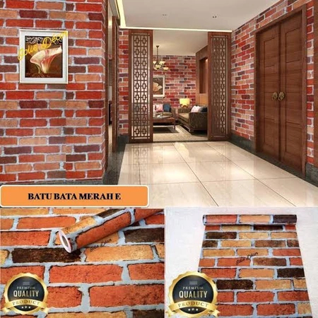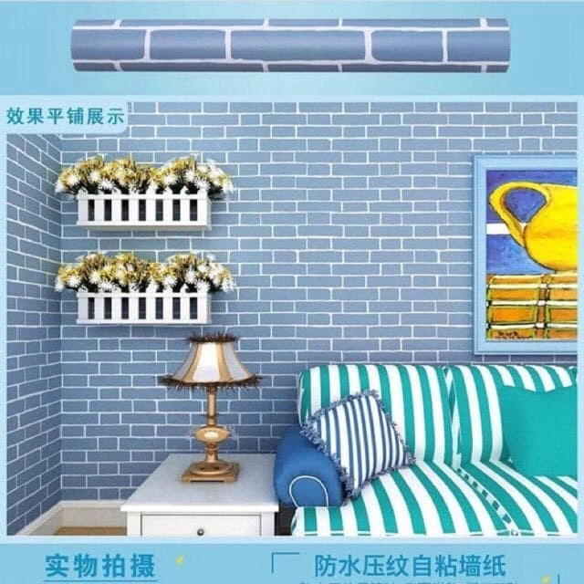 Wallpaper Dinding Paket 3 Roll Motif Bata Biru Premium Stiker Dinding Ukuran 45cm x 8m Premium Quality Terlaris Murah