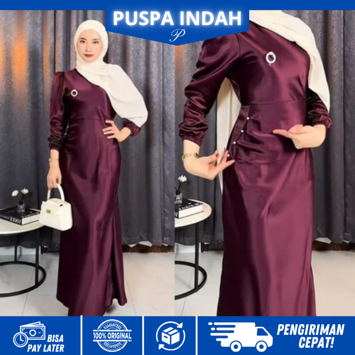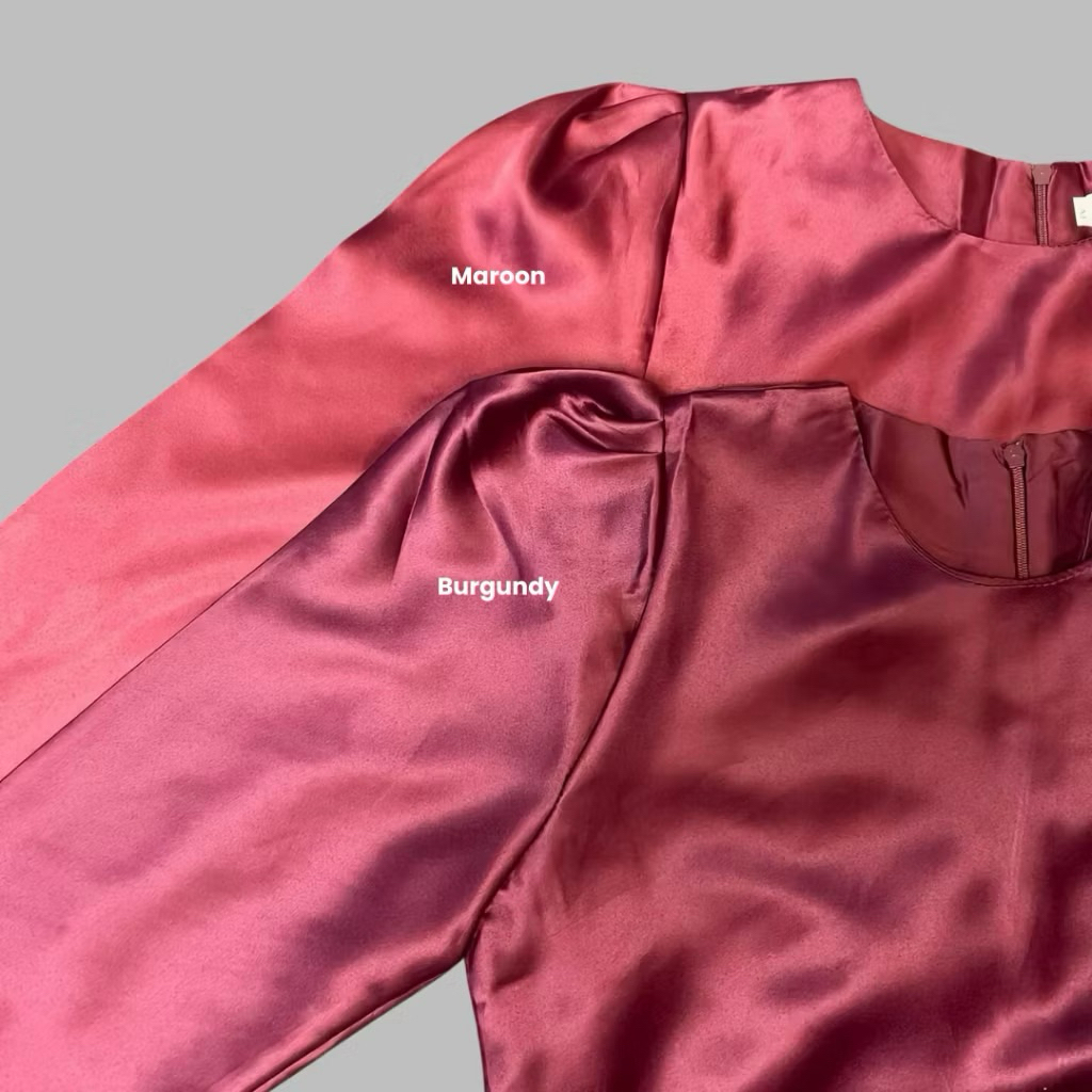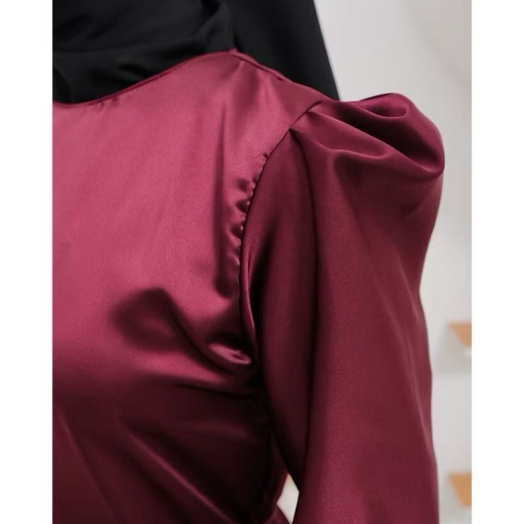 Elora Dress Satin Burgundy Polos Kondangan Bridesmaid Duyung Body Cone Gamis Lebaran 2025