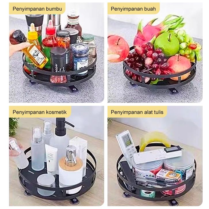 Rak Bumbu Putar Berputar 360 Derajat Rak Dapur Serbaguna Stainless Rotate Kitchen Spice Rack Organizer Rak Bumbu Dapur