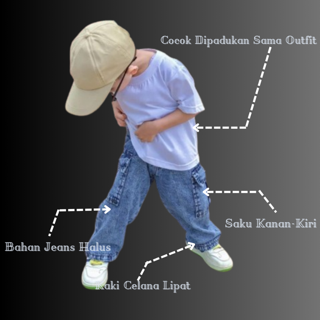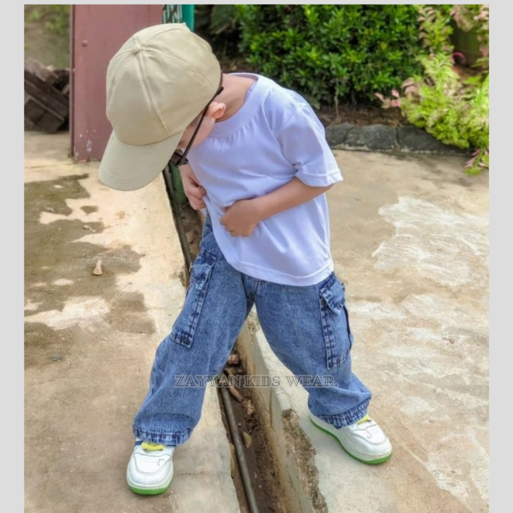 Celana Panjang Jeans Cargo Anak Laki Laki Usia 1-8 Tahun Bahan Quality Premium Halus Tidak Kaku