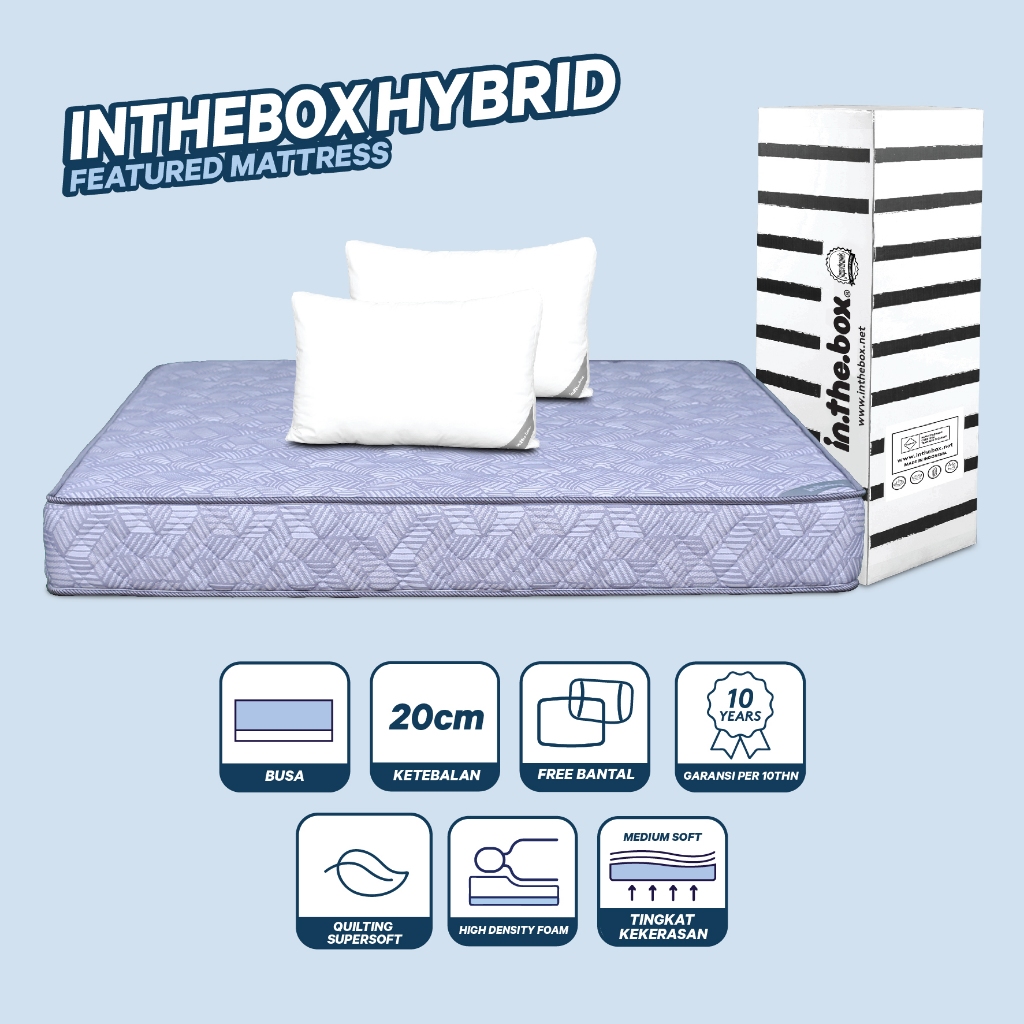 Kasur Busa Empuk Ergonomis IN THE BOX Hybrid - Free Bantal Garansi 10 Tahun