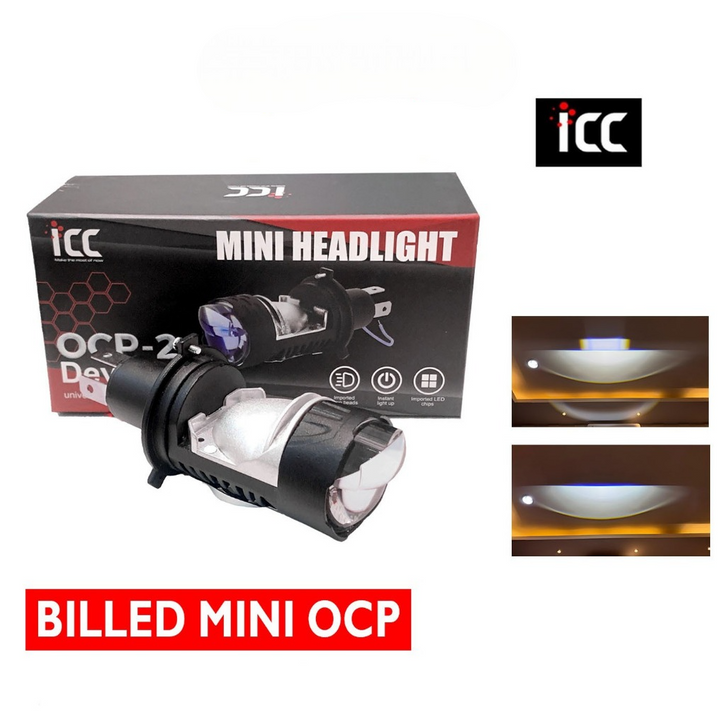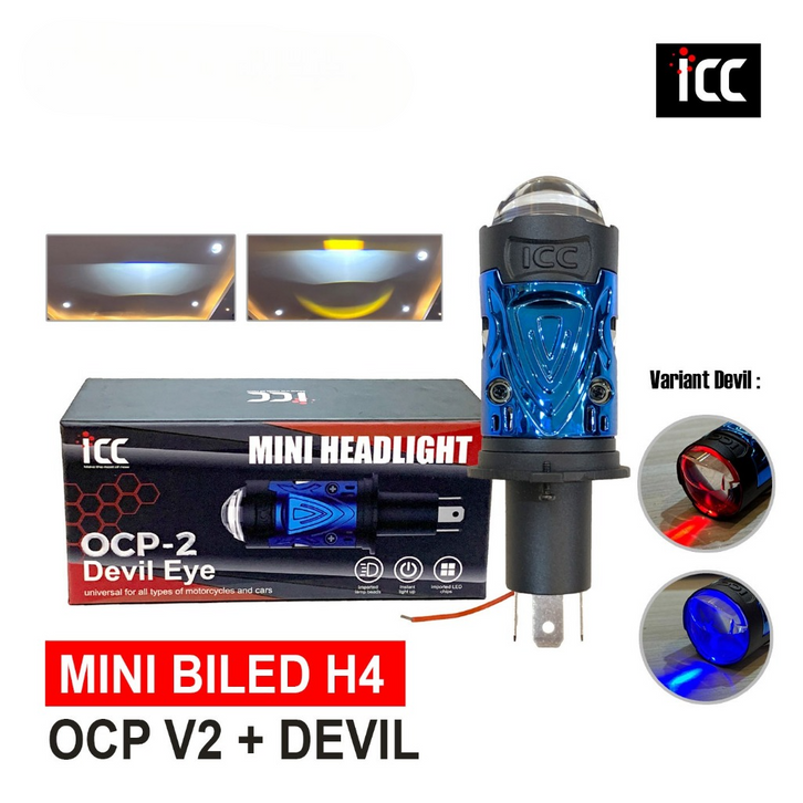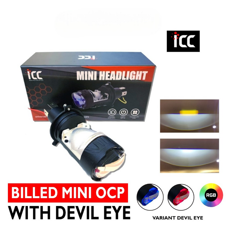 Biled Mini Laser ICC OCP H4 55 Watt – Lampu Motor LED Projie Kuning + Devil Eye | Cahaya Super Terang Fokus