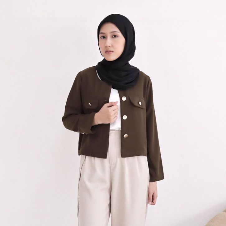 Outer Wanita Lengan Panjang Long Wanita Basic Wanita Cardigan Cewe Jaket Wanita Cardigan Berbahan Woven Stylish