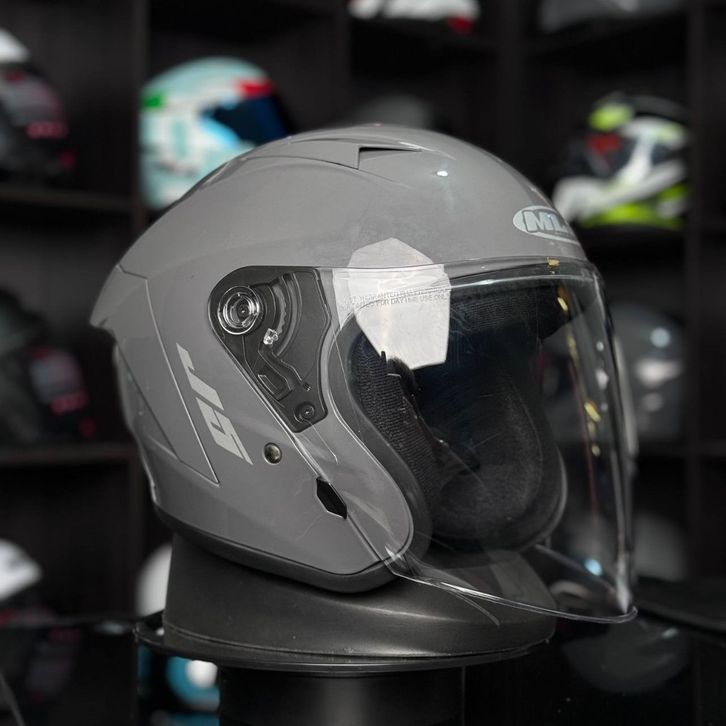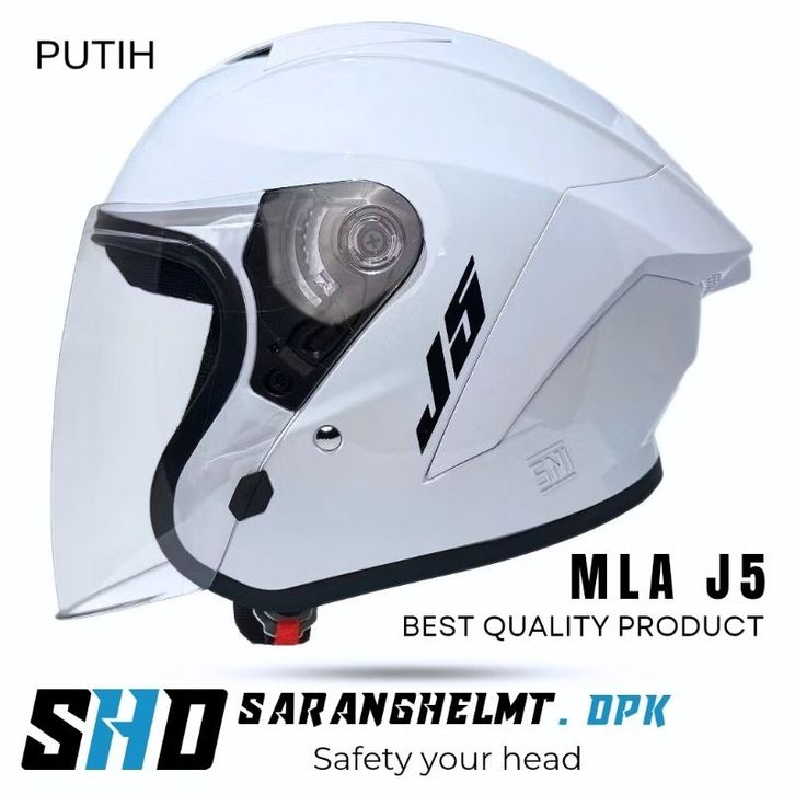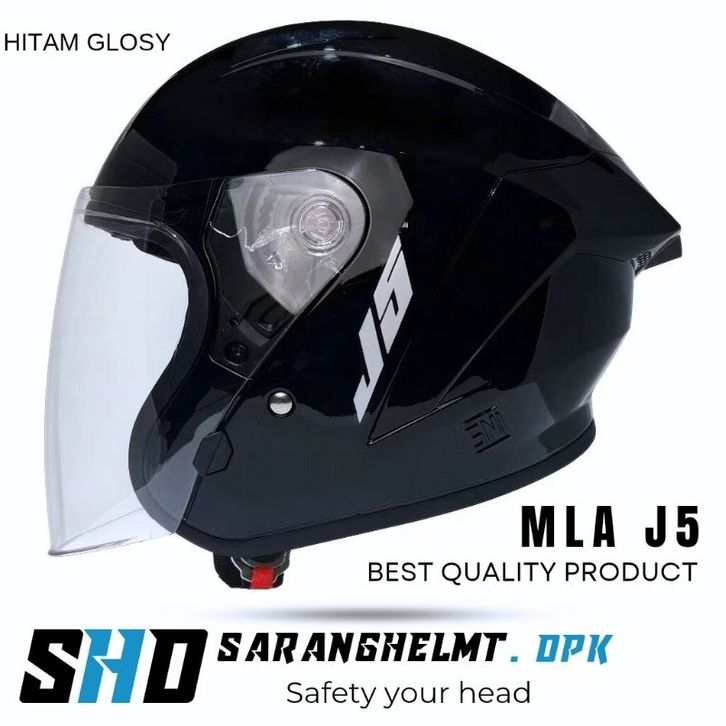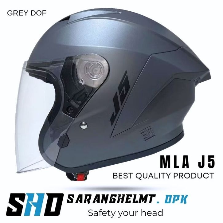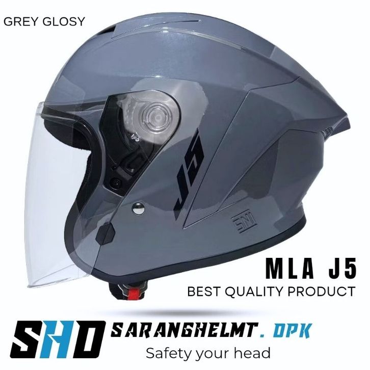 Helm Half Face miliA J5 Solid9rey Glosy Kaca Visor Clear/Helm Half Face SNI Pria Wanita Dewasa