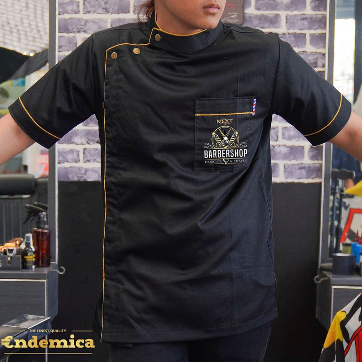 Kameja/Baju/seragam Barber/koki variasi list jpn drill plus bordir logo