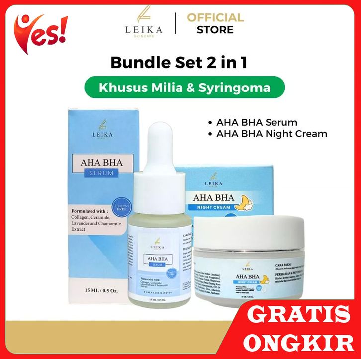 YES Leika Skincare 2 in 1 AHA BHA Serum & AHA BHA Night Cream Resmi BPOM Paket Skincare Penghilang Milia Di Wajah Serum