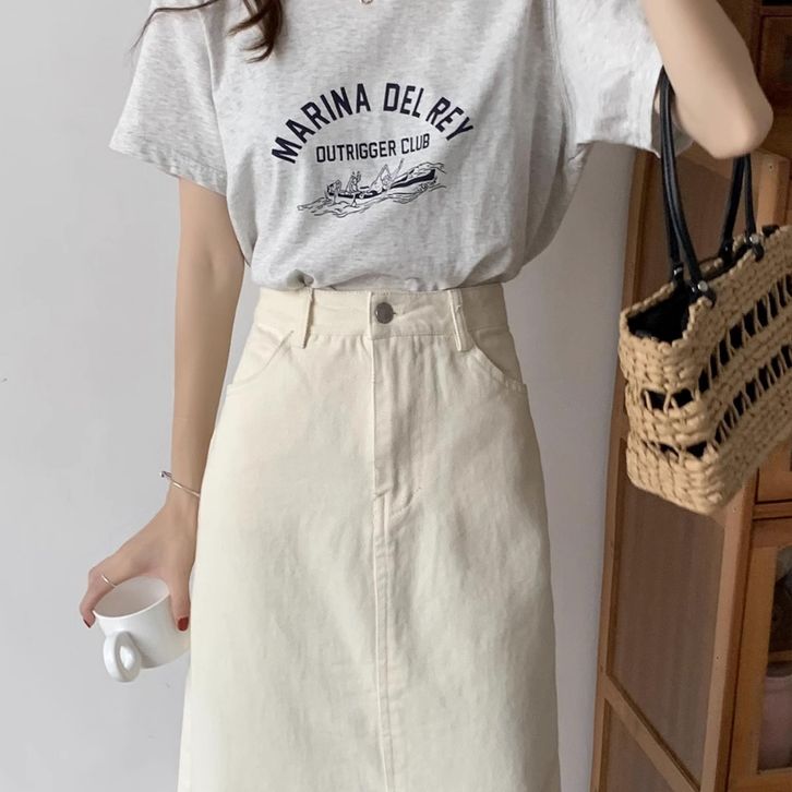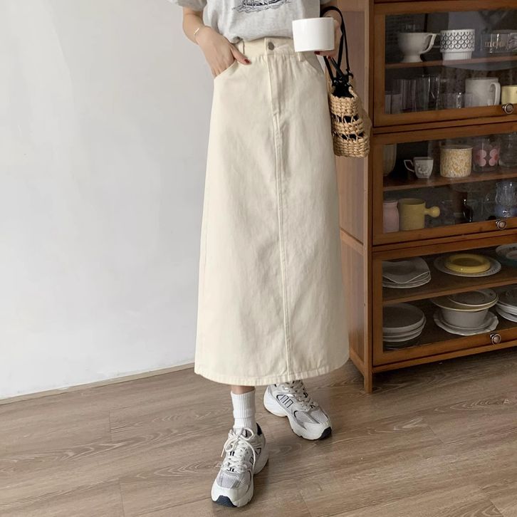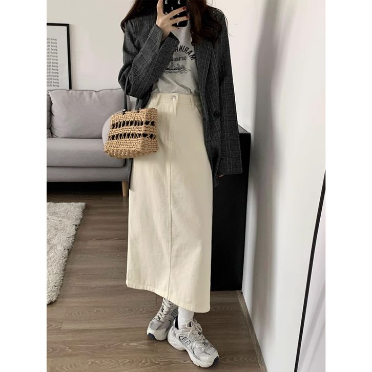Pakaian Wanita Kekinian Terbaru Rok Jeans Warna Hitam Biru Muda Gaya Korea Berkualitas Premium Tinggi Stylish Modern