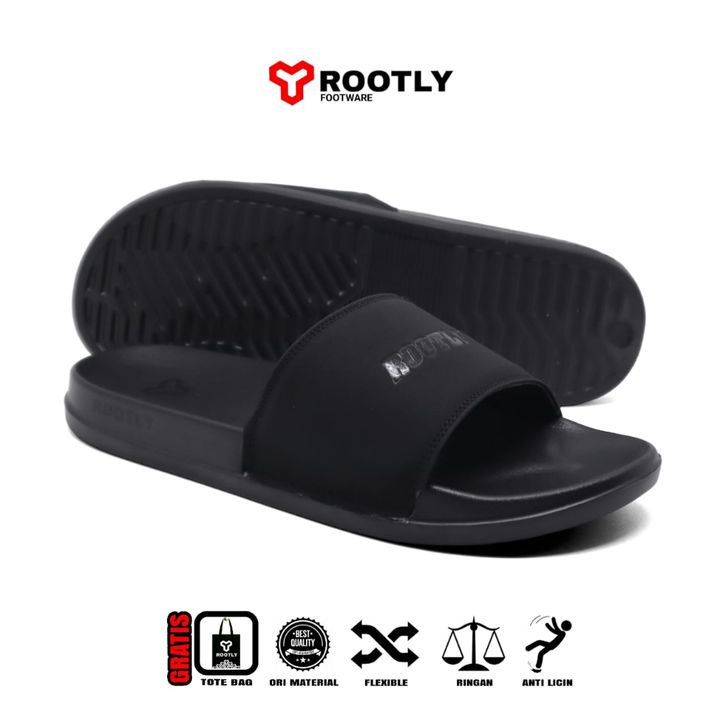 Rootly - Sendal Selop Full Black Slipper Unisex
