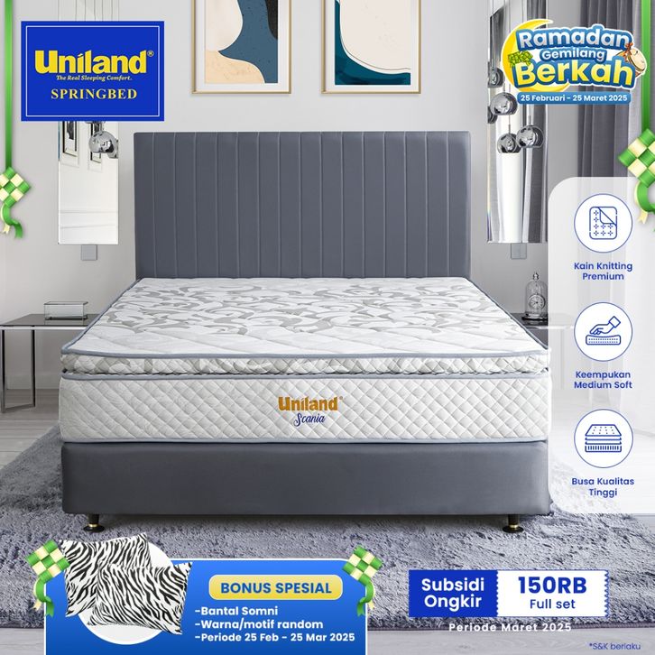 Uniland Springbed Scania Pillowtop - Full Set Kasur Spring Bed