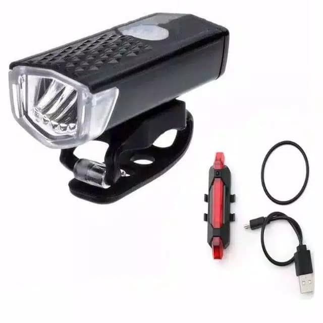Paket 2in1 Lampu Sepeda LED Light Depan dan Belakang Rechargeable