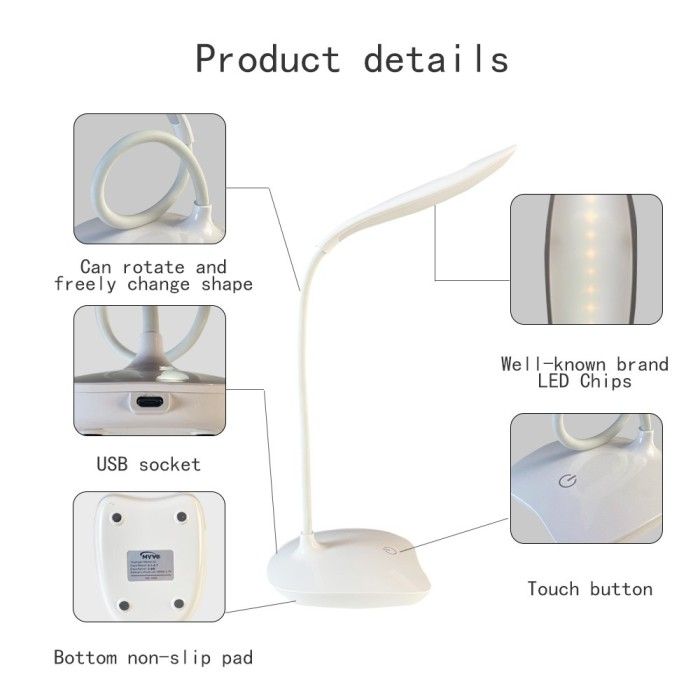 Lampu Meja / Lampu Belajar 14 LED 3 Mode sentuh model 2