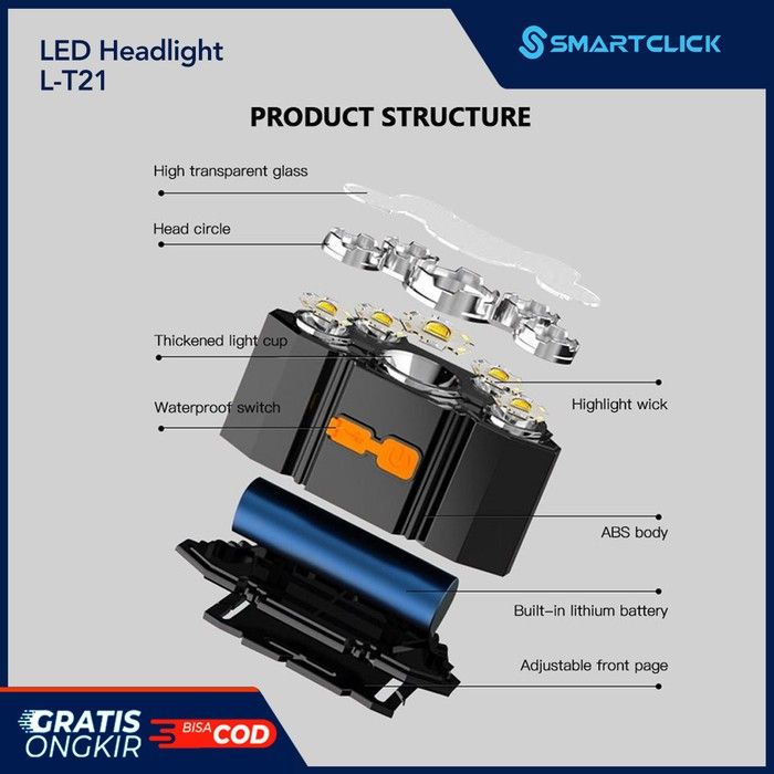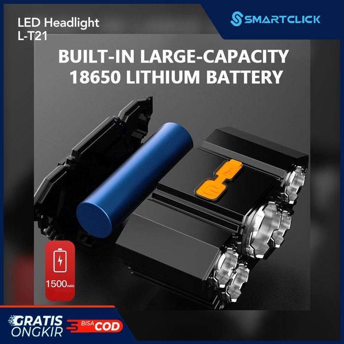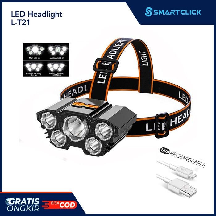HeadLamp Light Lampu Senter Kepala 5 LED 4 Mode USB Charge L-T21