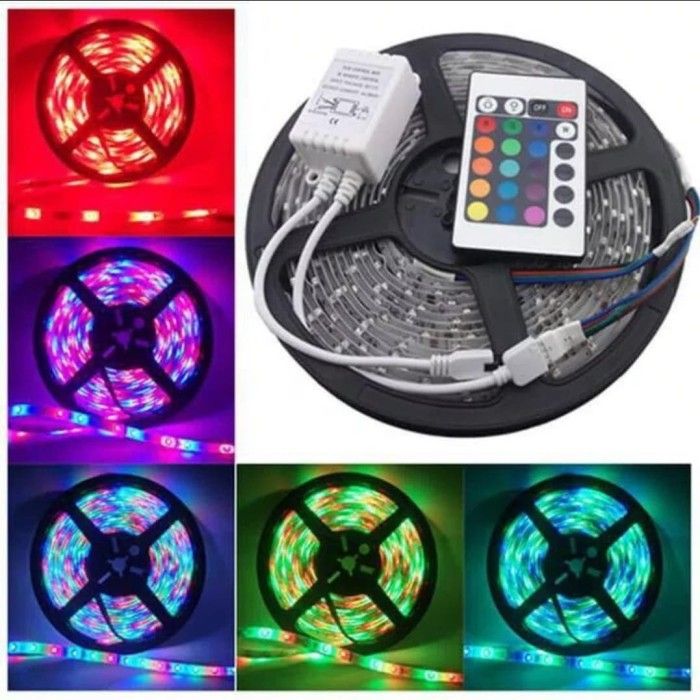 Lampu led strip RGB warna warni ip44 3528 komplit set adaptor remote - 3528 mata kecil