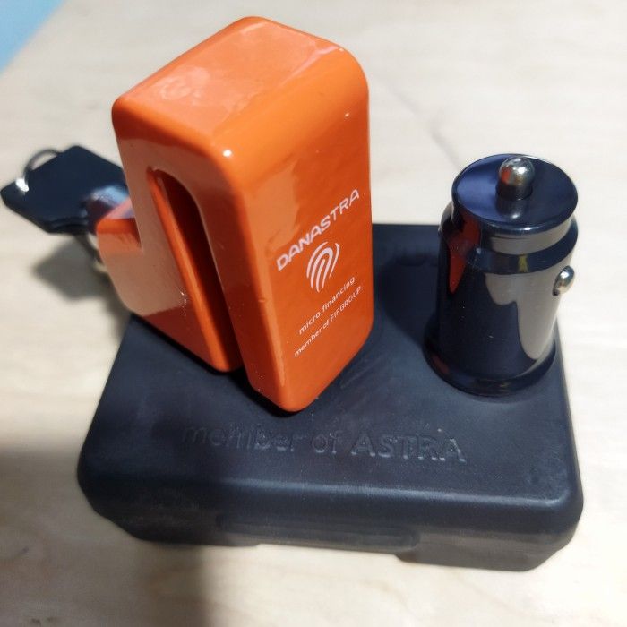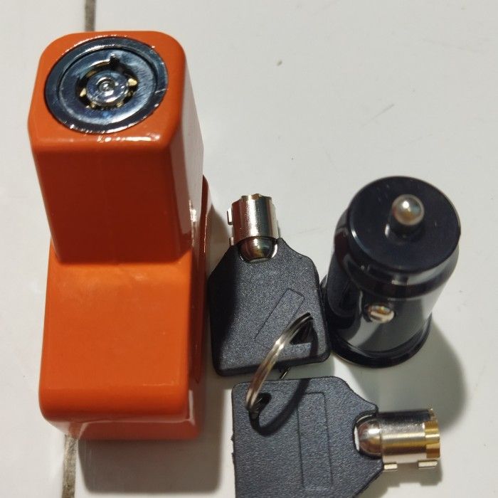 Gembok kunci pengaman cakram sepeda motor + Charger USB Original Astra