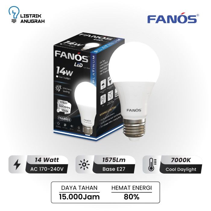 Fanos Platinum 14 Watt (BERGARANSI) Lampu LED Premium Putih CDL
