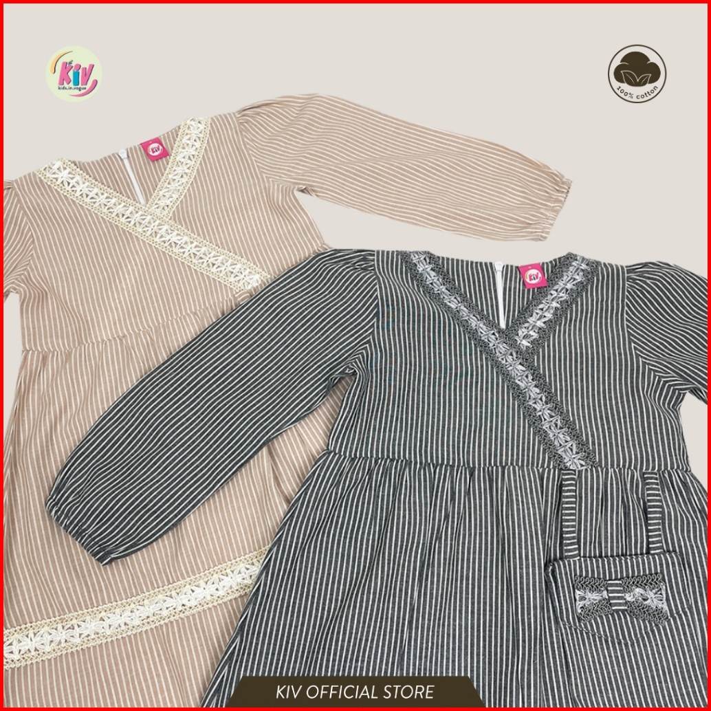 Kiv Gamis Anak Perempuan Katun Motif Salur Go 16 Go 23 Go 2124