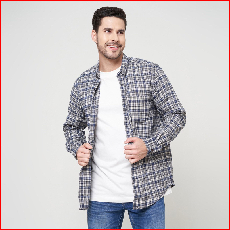 Peternation Kemeja Flanel Pria Wool Basic Panjang Regular Fit
