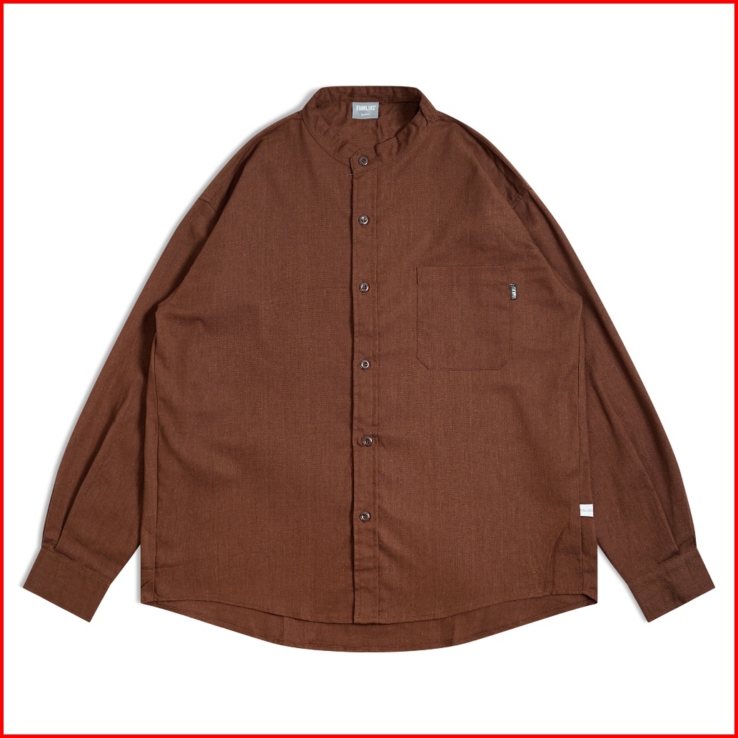 Familias - Brown Grandad Collar Shirt - Ceko Br