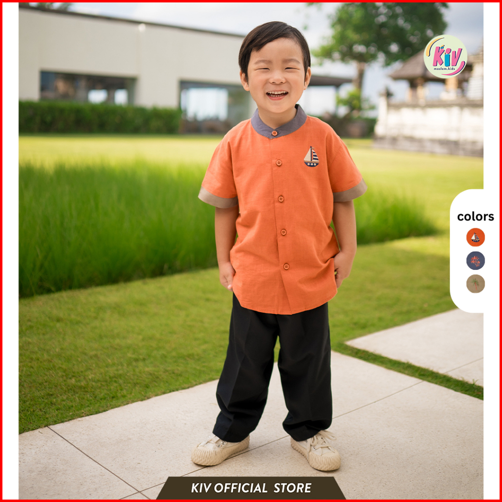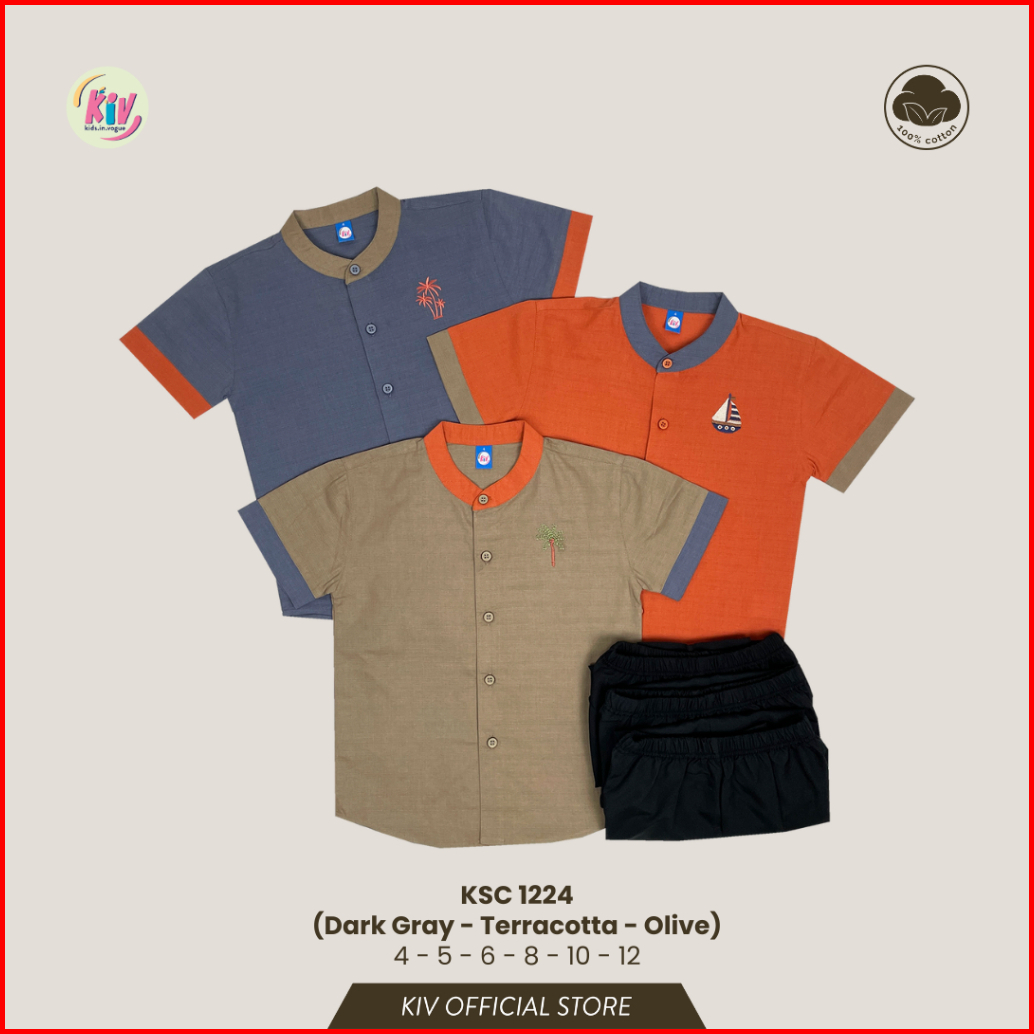 Kiv Kemeja Anak Laki-laki Set Celana Panjang Polo R Series Bordir Ksc 1224