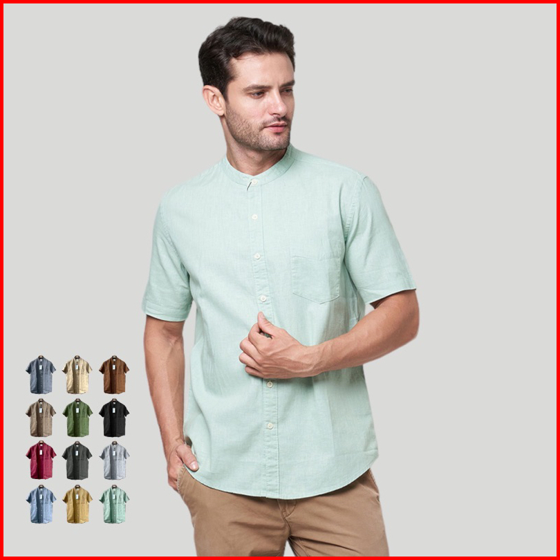Peternation Kemeja Linen Plus Sanghai Pendek Sage Green All Variant Regular Fit