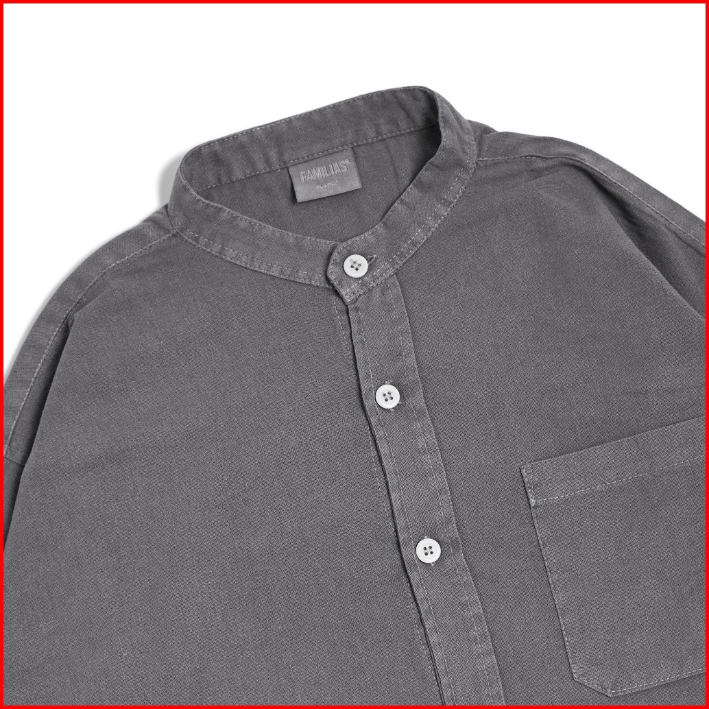 Familias - Washed Grandad Collar Shirt - Ceko Gy