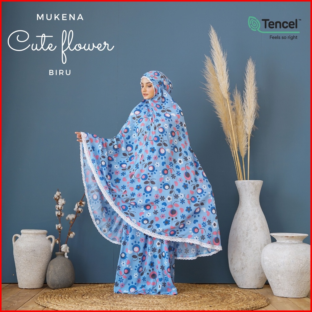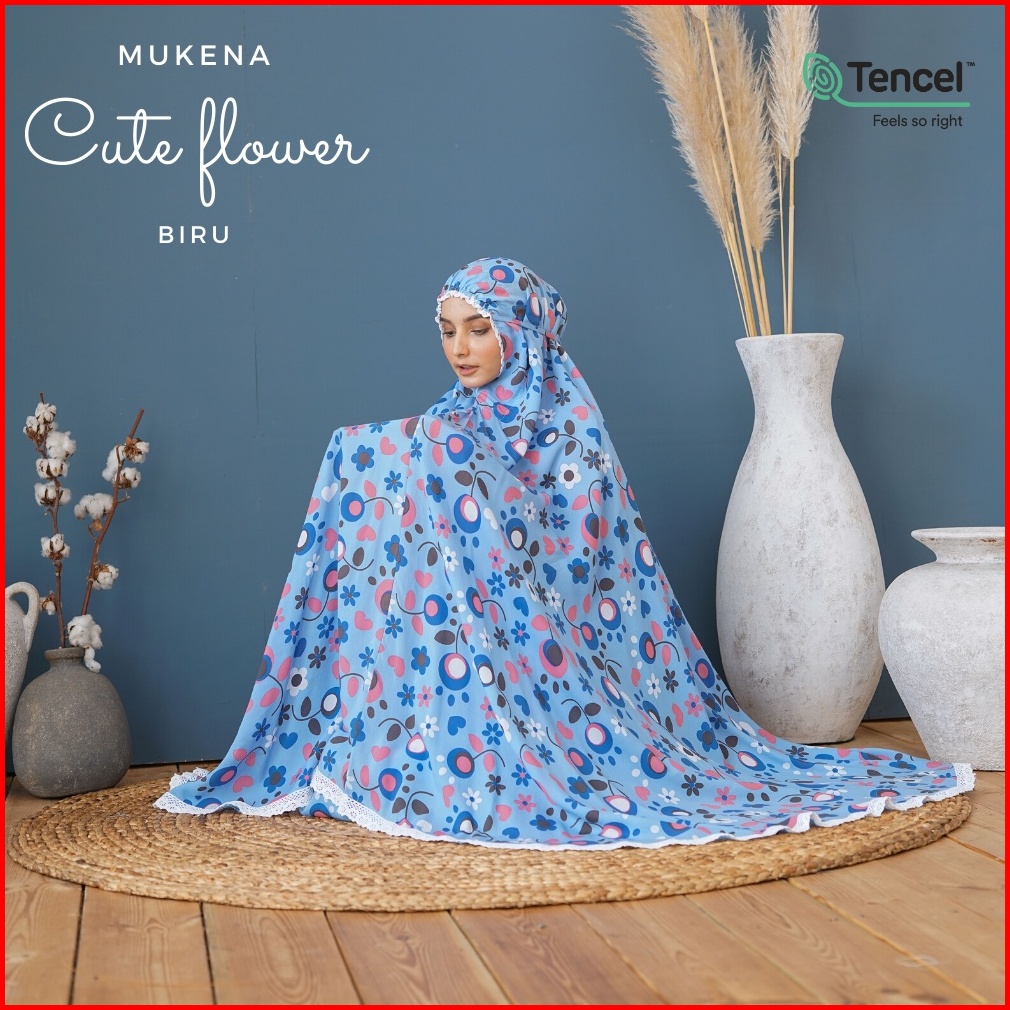 Belimukena Premium - Mukena Cute Flower Biru Free Tas Pouch Box