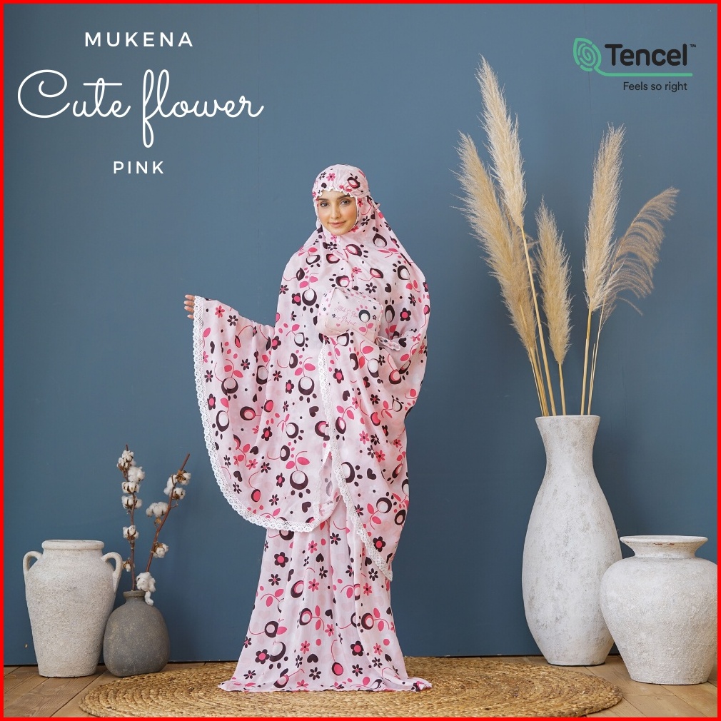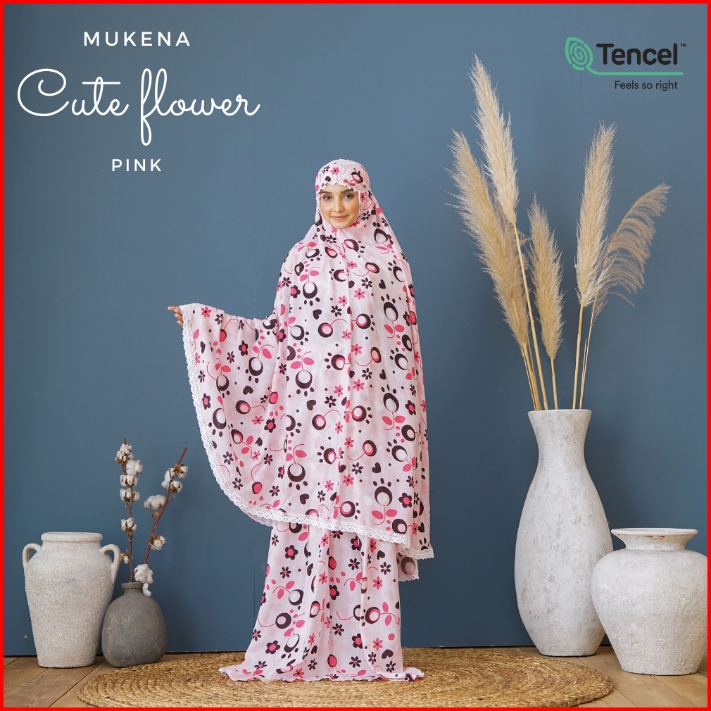 Belimukena Premium - Mukena Cute Flower Pink Free Tas Pouch Box