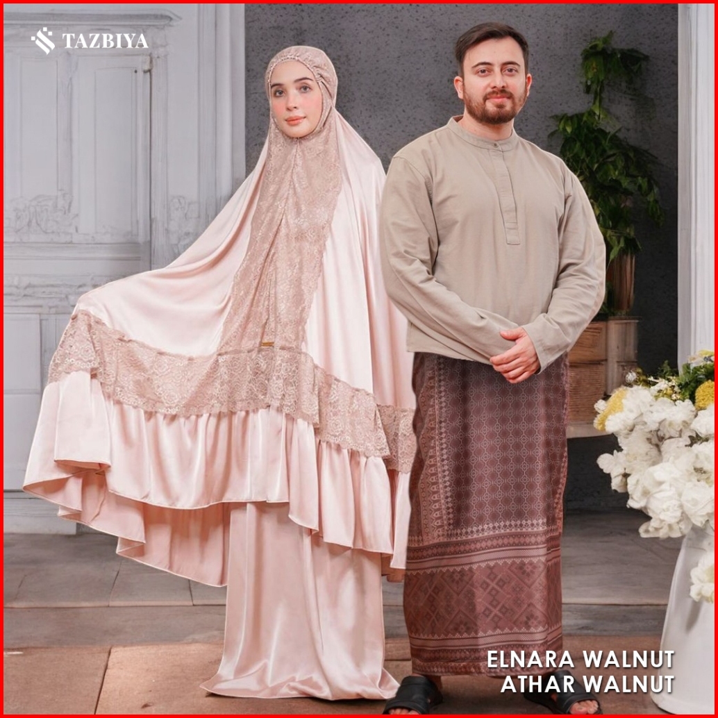 Tazbiya X Hamidah Couple Set Mukena Lace Dan Sarung Dewasa Mukena Silk Premium Lace Renda 2in1 Mukena Lebaran Mukena Ram