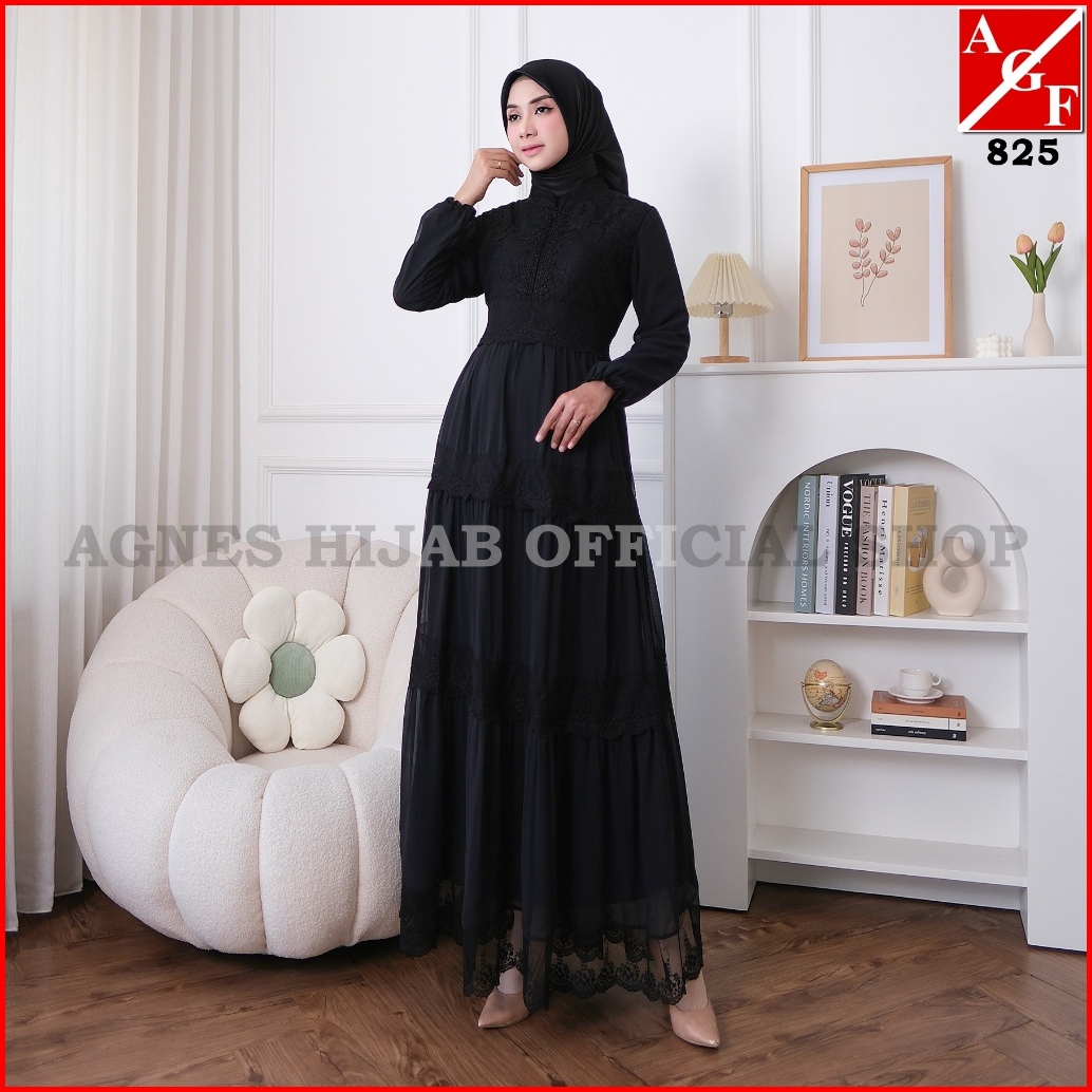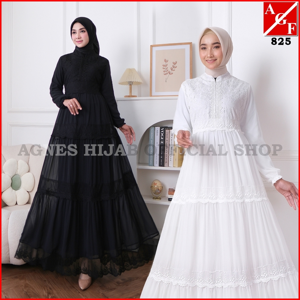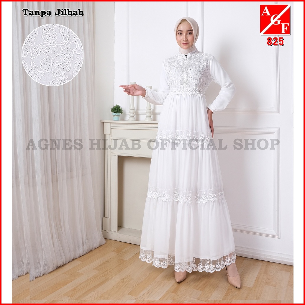Agnes Hijab - Azzahra Dress Gamis Putih Baju Lebaran 2025 Terbaru Gaun Pesta Haji Umroh Kondangan Remaja Abaya Hitam Mus