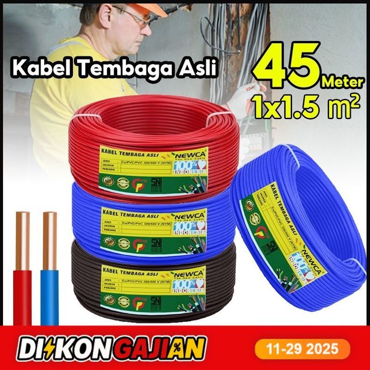 Reaim Kabel Eterna NYM Kualitas Bagus 1x1.5 45M Kabel Tembaga Murni putih tunggal kawat