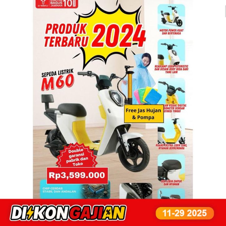 FREE ONGKIR DOUBLE BONUS M60 Sepeda Listrik UWINFLY M60 u winfly u-winfly m 60 Moped Electric anti air tahan hujan NEW!!