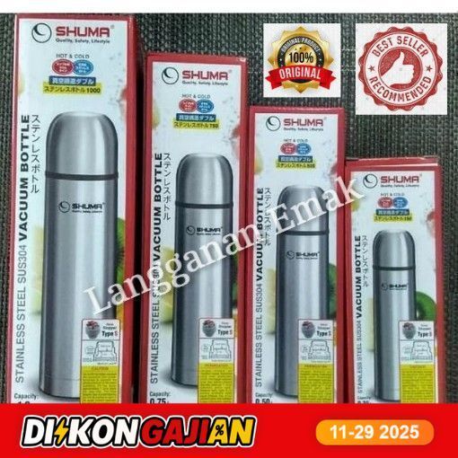 FREE ONGKIR_ SHUMA Termos Stainless 350 ml / 500 ml / 750 ml / 1 Liter Vacuum