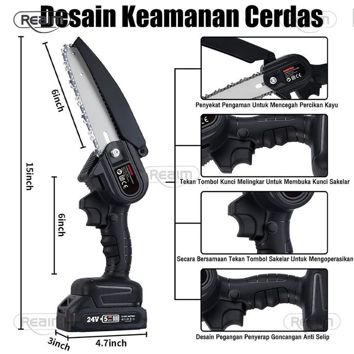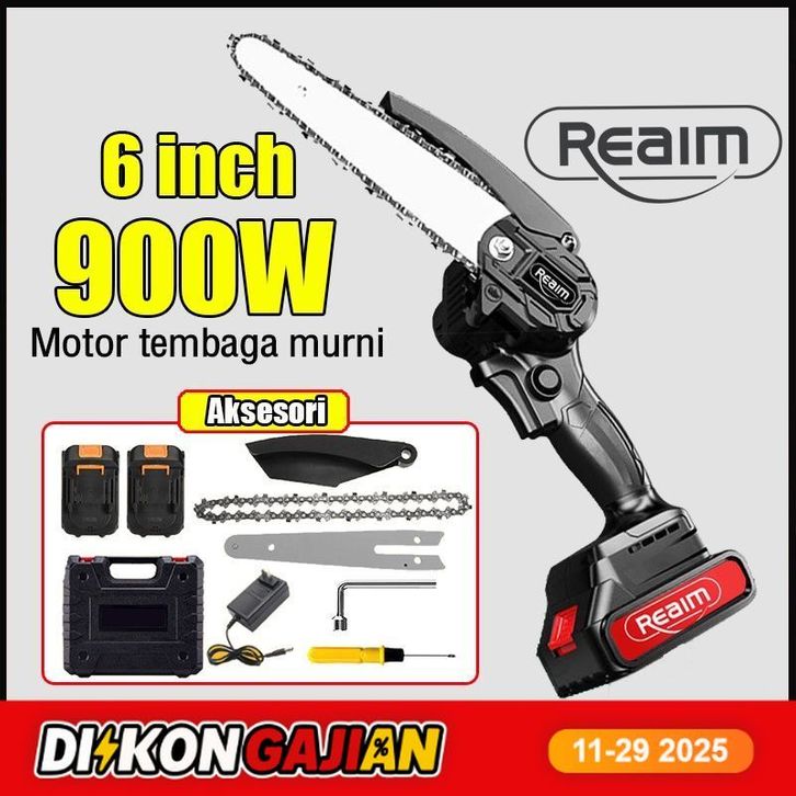 Reaim Chain Saw Cordless⚡2 baterai⚡6 Inch Chainsaw Gergaji Rantai Elektrik Mini Portable Genggam Lithium Model-ldj001