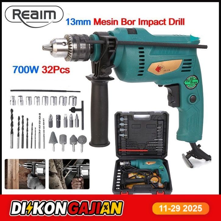 Reaim Mesin Bor Listrik 2 Arah Bolak Balik 13MM Impact Drill Listrik Tipe 10-3/Electric Drill Tangan Bor beton/besi/kayu